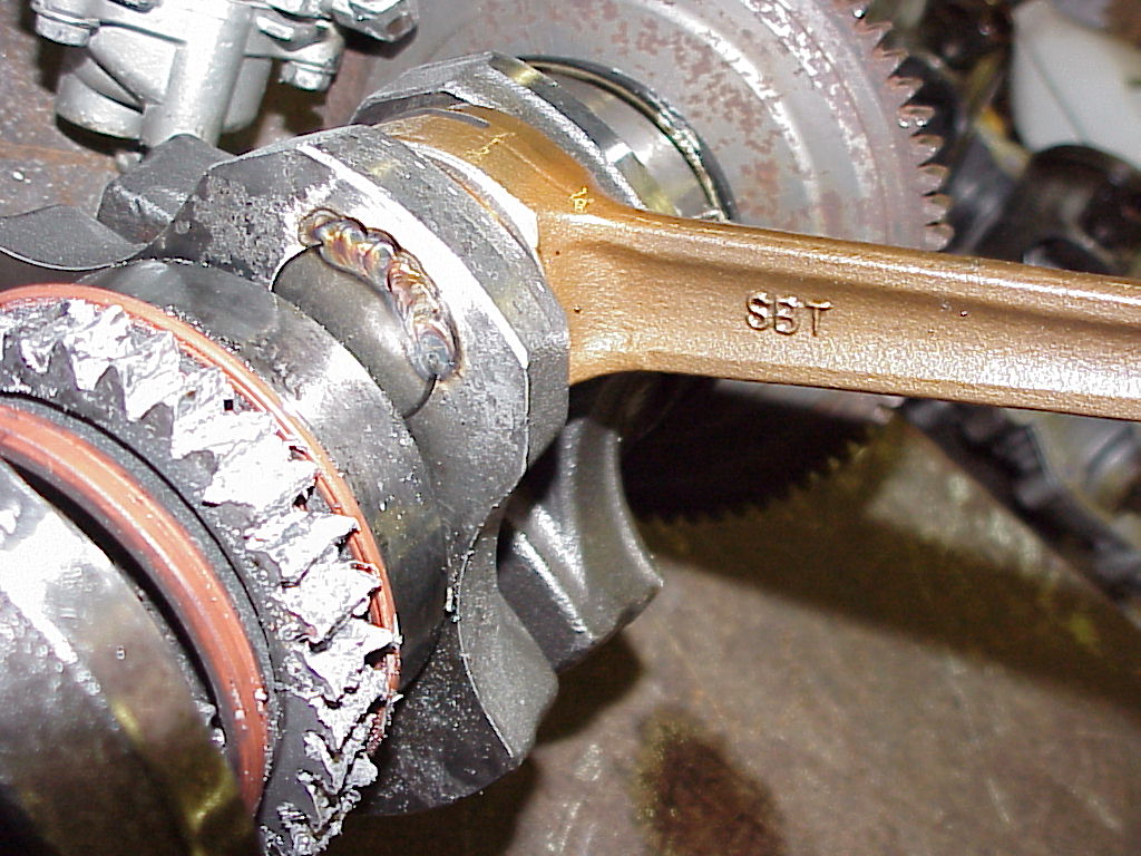 In my professional opinion, it looks like a typical 947 that someone put together and forgot to put the oil in the CB gear reservior. Once the gears start to self destruct, they begin to push metal fragments out of the seals and into the bearings. This then results in the rapid failure of the associated bearing(s). Thoughtful, honest and careful disassembly of the crank will show which way the debris came through the oil seals and what part failed first. My diagnosis is based on your pictures alone, including one with rust, and would need closer examination and disassembly fully determine the failure.Last edited by John Kubiak; 10-29-2008, 12:03 AM.John Kubiak