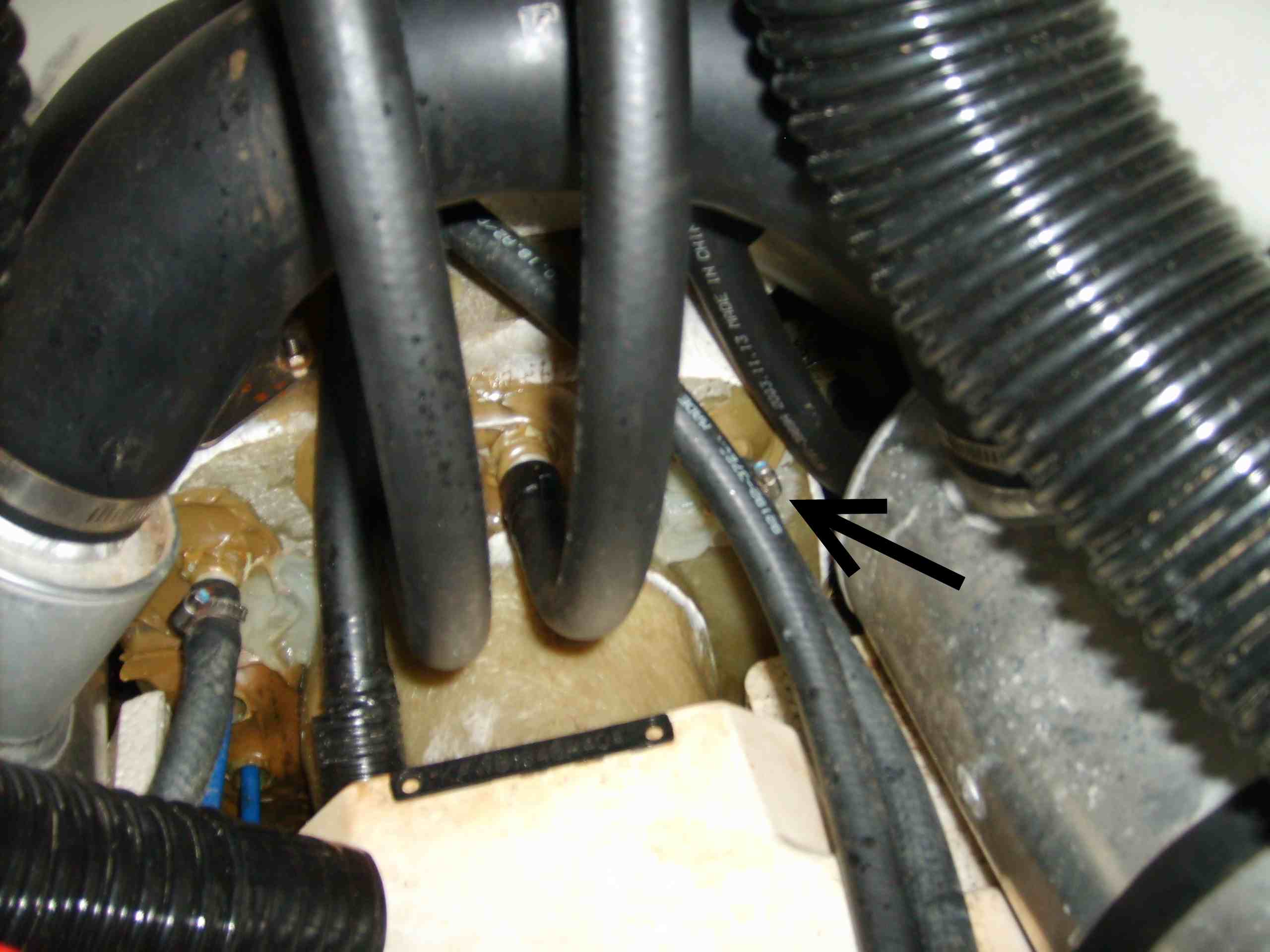 The hose that came off on mine was the port line coming off the pump. There are four hoses that exit near the pump area, the two big ones near top center are for bilge drains, the smaller hoses below those are the pump lines. I've attached a photo with an arrow pointing to the one that came off (near muffler).