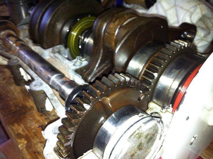 I am about to put my 800 crankcases together, in the seadoo manual it shows that the crank gear mark lines up in the center of the counter balance shaft gear groove/notch, but as you can see mine dosent seem to line up in the center???? [img]/graemlins/angryfire.gif[/img] Is this commonl?? Does Bill or the SBT workers see this misalignment?
