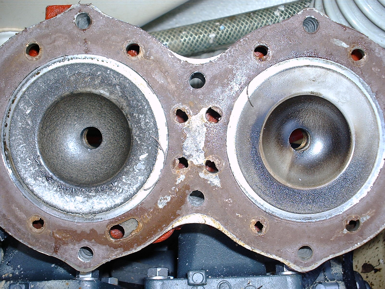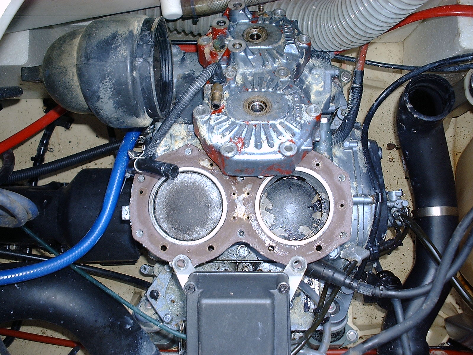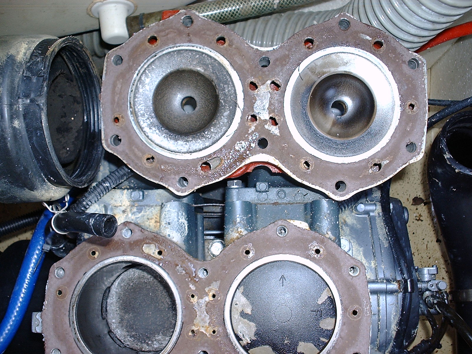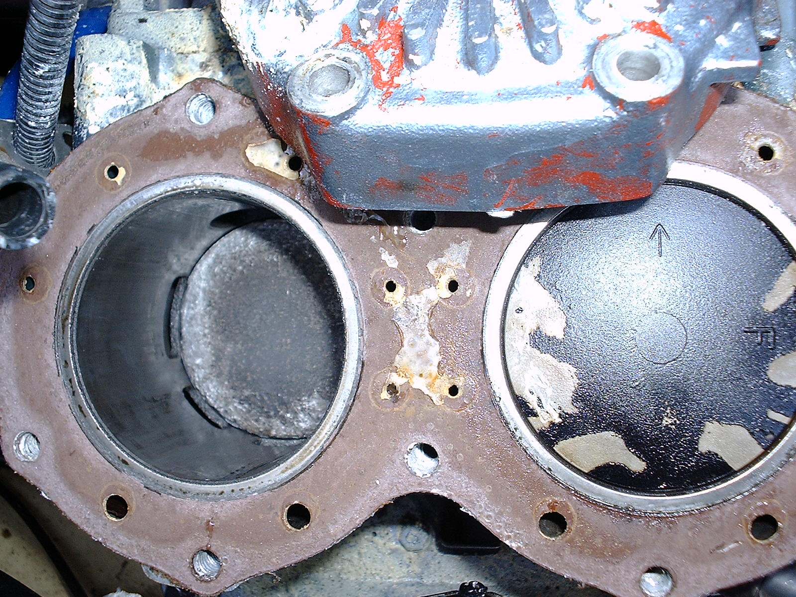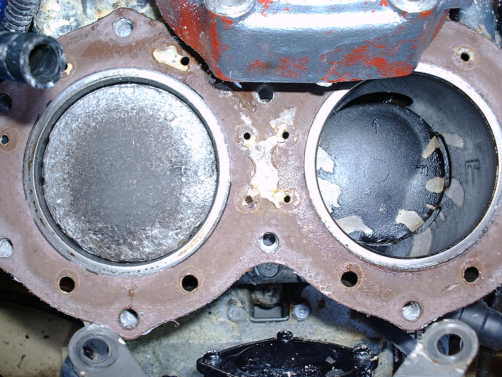A friend lost compression on his ski. He took the top end off and this is what he found. I am thinking ring broke off and caused dammage.