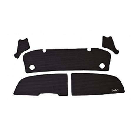 Option 1)Removal of snaps from old carpet inserts: This applies to boats that have previously had snap in cockpit carpeting. You will first need to remove all the existing snaps. These are normally screwed down with a stainless steel Phillips head screw. Once the screws are removed we suggest filling the holes with epoxy to prevent water intrusion. You can use any of the quick set epoxies available at marine parts store, auto parts store and home centers. We suggest the syringe type that pre mixes as it comes out, it is a little easier to apply. Option 2)Removal of previously glued down traction mats: Start by peeling a corner of the mat up from the deck. Slowly continue to pull while using a plastic putty knife or scraper to help you release the mat from the glue. Keep working at it until all mats are removed. Once the mats are removed you need to get the left over pieces and the remaining glue residue. We suggest 3M adhesive remover or other suitable brand. This will soften the glue and allow you to scrap and wipe it away. Clean up:? After all the old mats and glue are removed you will need to clean the surface before installing your new mat set.? Use some rags and solvent for this step. Denatured alcohol, acetone, goof off or goo gone will work here. Change your rag often so as not to just spread the dirt and goo around. After this wash the entire surface with a mild soap and water solution and thoroughly dry ( a day in the sun works best here). Install: First lay out all the mats in their proper location and check for a good fit. At this point use a pencil and mark a few spots around each mat to use as an alignment guide while sticking them down. Begin by peeling one edge of the first mat you have chosen to install and stick it to the floor making sure to align it with your marks. Once this edge is down you can continue to peel the backing while pressing the mat into place.(DO NOT TRY TO INSTALL THE ENTIRE MAT AT ONCE) After all mats are adhered to the floor of the boat you must apply pressure over the entire surface to activate the PSA (pressure sensitive adhesive). You can do this by standing on all the mats moving around to make sure you apply pressure everywhere, especially the edges. Care and Maintenance: BlackTip Jetsports Traction Mats are very easy to care for. Rinse them with fresh water while cleaning the boat. Use a mild soap and water solution the same as you would for washing the rest of the boat. For stubborn stains you can use Simple Green, Fantastic, 409 or other similar household cleaner and rinse with water after cleaning. |