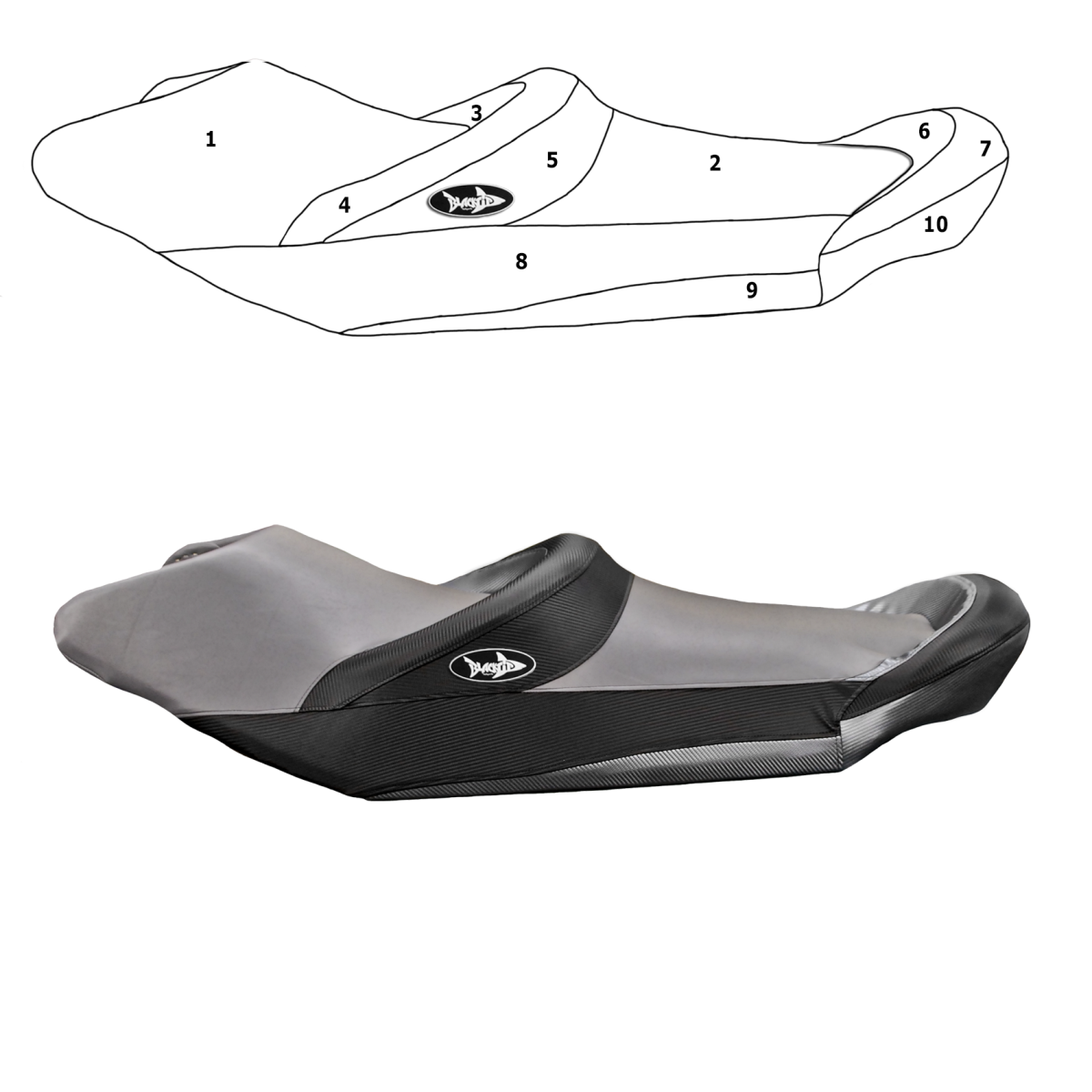 NOTE: Custom Seats will be charged as soon as we get the order and before they are made (due to our inability to resell custom covers). Once charged, you order will not be refunded. Custom Seats typically ship within 5-7 business days from the time of order. Our program allows you to see the pattern on-line and create your own color scheme for your brand new jet ski seat cover. The cover is made from high quality marine vinyl and designed to last for years. The individual section provides for a tight, custom fit and look.Please choose the color for each panel: