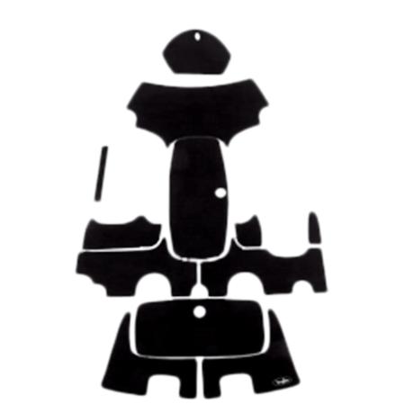 Option 1)Removal of snaps from old carpet inserts: This applies to boats that have previously had snap in cockpit carpeting. You will first need to remove all the existing snaps. These are normally screwed down with a stainless steel Phillips head screw. Once the screws are removed we suggest filling the holes with epoxy to prevent water intrusion. You can use any of the quick set epoxies available at marine parts store, auto parts store and home centers. We suggest the syringe type that pre mixes as it comes out, it is a little easier to apply. Option 2)Removal of previously glued down traction mats: Start by peeling a corner of the mat up from the deck. Slowly continue to pull while using a plastic putty knife or scraper to help you release the mat from the glue. Keep working at it until all mats are removed. Once the mats are removed you need to get the left over pieces and the remaining glue residue. We suggest 3M adhesive remover or other suitable brand. This will soften the glue and allow you to scrap and wipe it away. Clean up:? After all the old mats and glue are removed you will need to clean the surface before installing your new mat set.? Use some rags and solvent for this step. Denatured alcohol, acetone, goof off or goo gone will work here. Change your rag often so as not to just spread the dirt and goo around. After this wash the entire surface with a mild soap and water solution and thoroughly dry ( a day in the sun works best here). Install: First lay out all the mats in their proper location and check for a good fit. At this point use a pencil and mark a few spots around each mat to use as an alignment guide while sticking them down. Begin by peeling one edge of the first mat you have chosen to install and stick it to the floor making sure to align it with your marks. Once this edge is down you can continue to peel the backing while pressing the mat into place.(DO NOT TRY TO INSTALL THE ENTIRE MAT AT ONCE) After all mats are adhered to the floor of the boat you must apply pressure over the entire surface to activate the PSA (pressure sensitive adhesive). You can do this by standing on all the mats moving around to make sure you apply pressure everywhere, especially the edges. Care and Maintenance: BlackTip Jetsports Traction Mats are very easy to care for. Rinse them with fresh water while cleaning the boat. Use a mild soap and water solution the same as you would for washing the rest of the boat. For stubborn stains you can use Simple Green, Fantastic, 409 or other similar household cleaner and rinse with water after cleaning. |