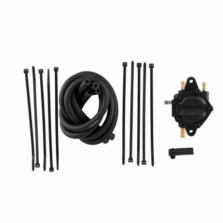 This is a supplemental fuel pump kit to add fuel delivery to the stock 650 and 750 pumps. The stock pumps from the factory weaken over time and starve the front cylinder for fuel, resulting in a hole through the piston. This kit comes with all the lines and fittings to bolster the fuel supply and correct the problem. |